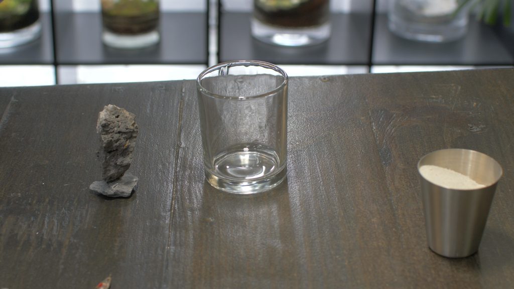 So in today’s project, I want to incorporate a sea stack into the design. For that to work, I will use our nano bantamarium jar. The difference is subtle, but the extra volume (4 ounces compared to a traditional 1.7-ounce shot glass) will allow me to make this possible. Let’s break down the material list so you know what you’ll need to replicate my miniature aquarium: