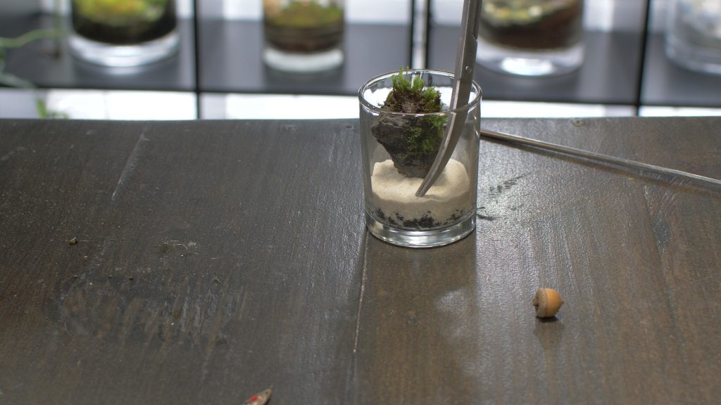 A light pruning might be necessary for the moss as it begins to fill in. I enjoy the natural look of an overgrown enclosure. It’s the mini aquarium that feels like it’s constantly changing when things start to take over.