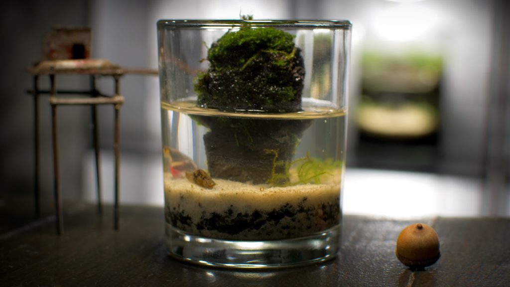 I promised this would be an easy aquarium to make, and hopefully, I delivered on that promise. This mini aquarium in a shot glass is a very intriguing piece of artwork to sport in an office or living room… and a great conversation starter! If you all enjoyed this type of living diorama, let me know… I have a shelf full of alcoholic glassware I’d love to do something with…
