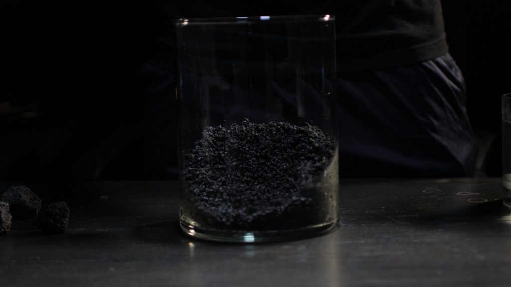 I pour small bits of black gravel over my platform to fill in any more gaps and start to create various hills for my buildings to sit on. This is followed by a tiny sand path between the larger buildings to give a sense of community and further enhance scale.